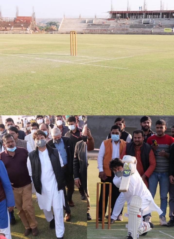 चार दिवसीय दौरे पर ग्वालियर पहुंचे केंद्रीय नागर विमानन मंत्री ज्योतिरादित्य सिंधिया ग्वालियर के शंकरपुर में बन रहे अंतरराष्ट्रीय क्रिकेट स्टेडियम का निरीक्षण किया इस दौरान उन्होंने वहां पर आधे घंटे के करीब बल्लेबाजी भी की और बोल बाजी ग्वालियर भाजपा जिला अध्यक्ष कमल मखीजानी प्रभारी मंत्री तुलसीराम सिलावट सहित कई लोगों ने की इसके साथ ही सिंधिया ने स्टेडियम के अंदर दौड़ भी लगाई सिंधिया के साथ दौड़ते हुए उनके समर्थक संजय शर्मा जमीन पर गिरपड़े वही सिंधिया केंद्रीय नागरिक उड्डयन मंत्री ज्योतिरादित्य सिंधिया ने कहा कि यह अंतरराष्ट्रीय स्तर का क्रिकेट स्टेडियम मेरे पिताजी का बहुत पुराना सपना था। वो लंबे समय से प्रयासरत रहे, वो सपना अब तेज गति से साकार होता जा रहा है। स्टेडियम का करीब 45 फीसदी काम पूरा हो चुका है। 30000 दर्शकों की क्षमता वाला स्टेडियम अगले साल दिसंबर तक पूरी तरह तैयार हो जाएगा। सिंधिया ने कहा कि अंतरराष्ट्रीय स्टेडियम में दर्शकों के साथ एक कारपोरेट बॉक्स और मीडिया के लिए भी खास बॉक्स बनाए जा रहे हैं, सिंधिया के मुताबिक हमें उम्मीद है कि ग्वालियर का ये नया स्टेडियम न सिर्फ देश का बल्कि दुनिया का सबसे अत्याधुनिक स्टेडियम बनेगा। यहां की टर्फ विकेट भी शानदार होगी, जो हाई स्कोरिंग मैच के लिए उपयुक्त जानी जाएगी। सिंधिया ने उम्मीद जताई कि जनवरी 2023 में जब अंतरराष्ट्रीय मैंच आवंटित होंगे तब ग्वालियर की बारी आएगी तो इस नए ग्राउंड में मैच कराया जाएगा।