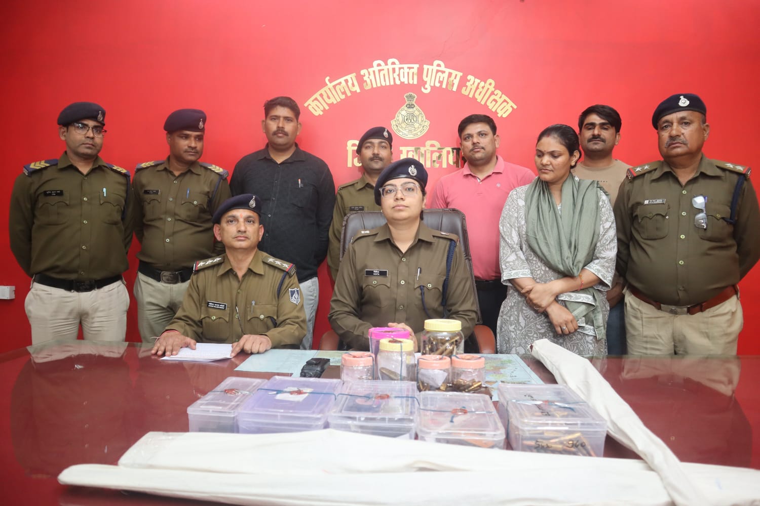 ग्वालियर में मारपीट और फायरिंग की सूचना पर पहुंची पुलिस को अवैध हथियारों का बड़ा जखीरा पकड़ने में सफलता प्राप्त हुई है पुलिस ने राइफल पिस्टल और कट्टा सहित जिंदा कारतूस बरामद की है पुलिस ने एक महिला और पुरुष आरोपी को गिरफ्तार कर मुख्य आरोपी सहित अन्य दो की तलाश शुरू कर दी है दरअसल ग्वालियर की सिरोल थाना पुलिस को सूचना मिली थी कि थाना क्षेत्र के अंतर्गत आने वाले मॉडल टाउन में गाड़ी निकालने को लेकर युवक अन्नू शर्मा से विवाद हुआ था जिसको लेकर बंटी यादव नामक बदमाश के लड़कों ने अन्नू के साथ मारपीट कर फायरिंग की घटना को अंजाम दिया है सूचना मिलते ही सिरोल थाना प्रभारी पुलिस बल के साथ मौके पर पहुंचे जब तक बदमाश मौके से फरार हो गए थे पुलिस ने मौके से पूछताछ की तो पता चला कि हुरावली निवासी बंटी उर्फ भगत सिंह यादव के लड़के अंशुल और अनिकेत यादव ने मारपीट कर फायरिंग की हैं मौके से पुलिस को यह भी जानकारी मिली की बंटी यादव के पुश्तैनी घर पर भारी मात्रा में अवैध हथियार और कारतूस रखे हुए हैं जिससे वह क्षेत्र में लोगों को डराने धमकाने का काम करता है पुलिस ने बंटी यादव के पुश्तैनी घर पर दबिश दी तो पुलिस को मौके से 3 रायफल 2 पिस्टल 1 कट्टा 9 मैगजीन सहित भारी मात्रा में जिंदा कारतूस और सौ से अधिक चले कारतूस बरामद कर एक महिला और एक पुरुष आरोपी मनीष यादव को गिरफ्तार किया है फिलहाल पुलिस ने गिरफ्त में आए आरोपियों से पूछताछ शुरू कर दी हैं की यह अवैध हथियार कहा से लेकर आते थे और फरार मुख्य आरोपी बंटी यादव सहित उसके लड़के अंशुल और अनिकेत यादव की तलाश शुरू कर दी है